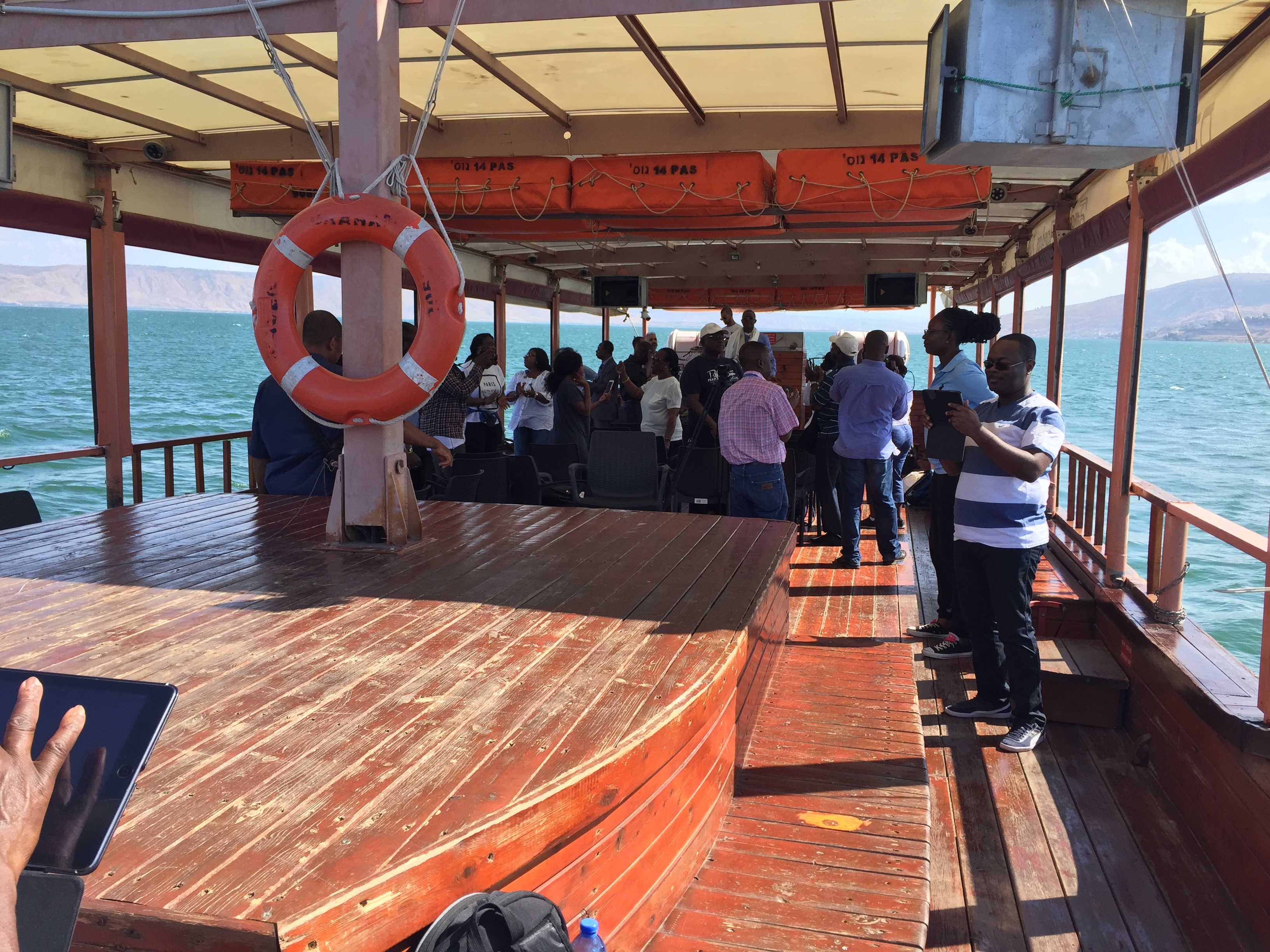 To the village of Gennasaret we went, for a boat ride on the Sea of Galilee, aka the Sea of Tiberias. We piled into a boat.
